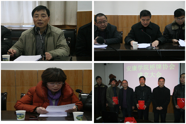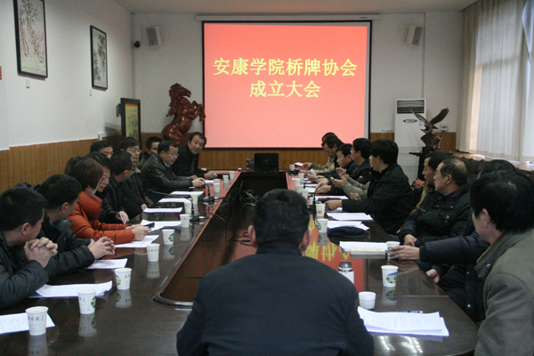 12月27日下午,校工会在江南校区会议室召开“英国正版365官网桥牌协会成立大会”。安康市人大常委会原副主任、安康市桥牌协会主席李隆毅,安康市党校常委副董事长、安康市桥牌协会常务副主席张宁,安康市体育局纪检组长、市桥牌协会秘书长陈复勇,公司党委副书记、工会主席胡鸿晓,工会副主席许宝林,校运动委员会秘书长、体育系主任冯德学,市桥协其他领导和公司桥牌爱好者等20余人参加了会议。许宝林主持大会。