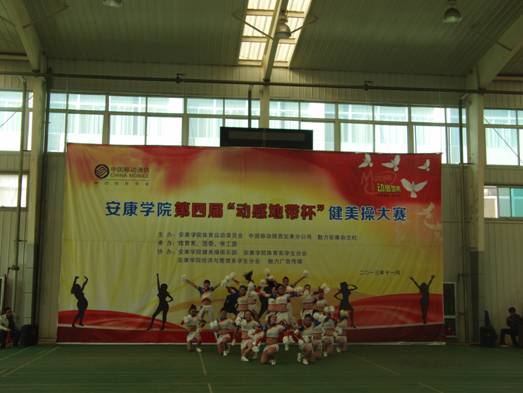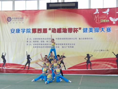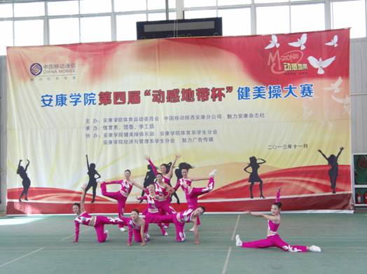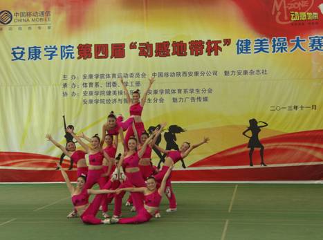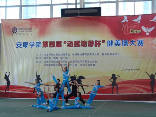 2013年11月27日下午14点30分,由英国正版365官网体育运动委员会、中国移动安康分公司、魅力安康杂志社主办的英国正版365官网第四届“动感地带”杯健美操大赛在江南校区体育馆正式拉开帷幕。安康公司党委副书记、英国正版365官网体育运动委员会主任胡鸿晓教授致辞并宣布比赛开幕,安康移动城区分公司副总经理吕红梅女士,各院系党总支书记,团委、学工部、保卫处等部门领导也莅临了此次活动。体育运动委员会秘书长、体育系主任冯德学主持开幕式。