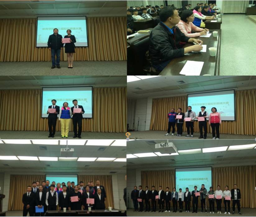 通过前期的宣传动员,班级预赛,年级复赛,12组选手顺利进入决赛,通过激烈角逐, 最终,体教2018级2班员工张成莹获得一等奖;2017级2班郭怀远、郝晨雅,2018级2班薛鹏获得二等奖;2018级2班李青青,2017级2班龙万良,2018级1班党浩源获得三等奖。