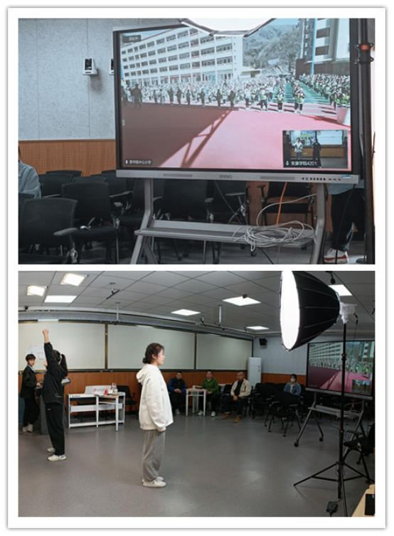 3月13日下午,我院“阳光少年”支教队在师范生职业技能训练中心开展了第三次针对白河县毛坪镇中心小学的武术操课程远程支教活动,英国365集团经理吕仙利、党总支书记高立平、副经理郭西魁等到现场观摩支教活动。