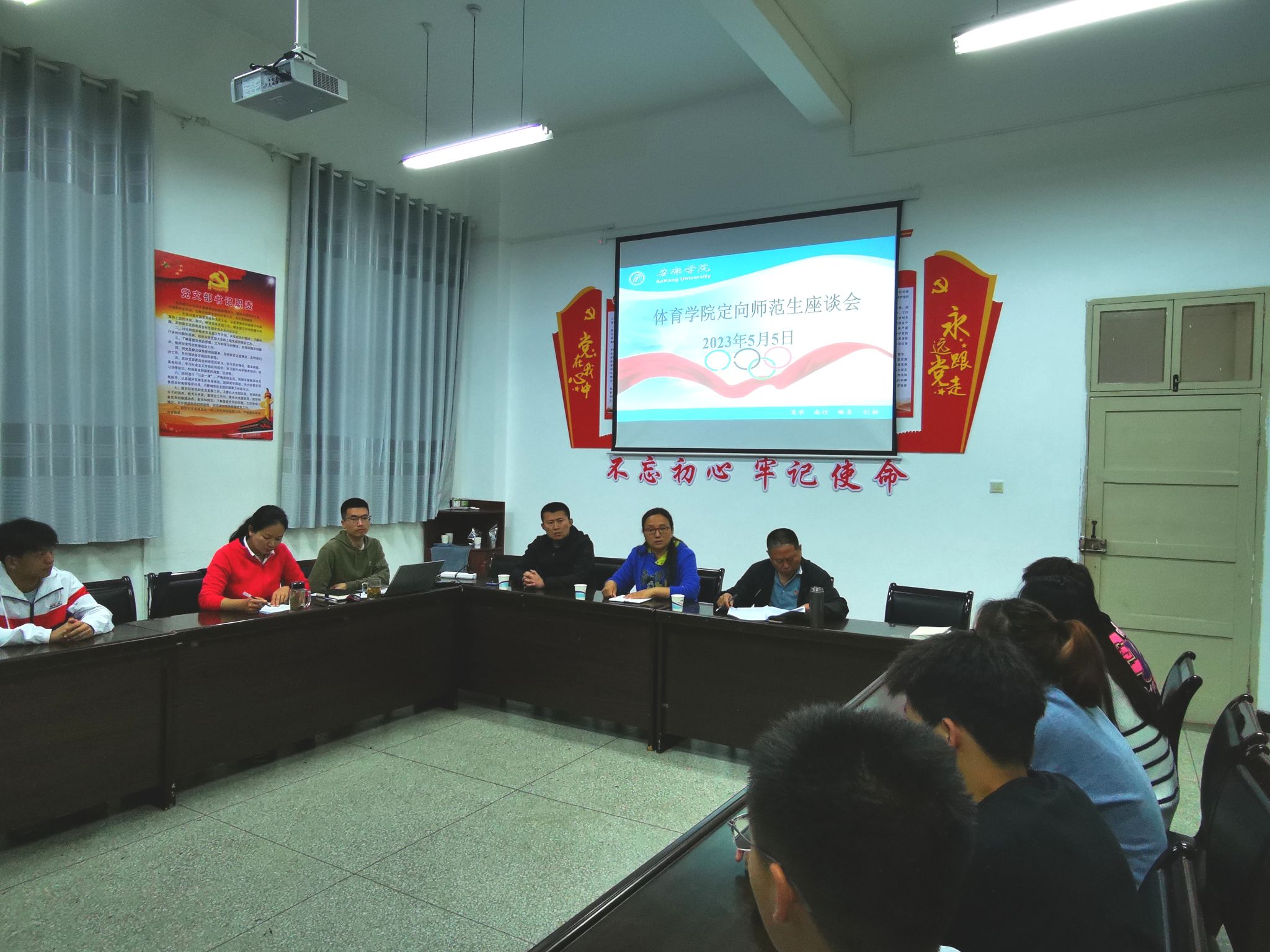 5月5日晚,英国365集团在体育馆会议室分别召开定向师范生和职业单招生座谈会。英国365集团经理吕仙利、党总支书记高立平、副经理郭西魁、学工办主任王立、体育系主任李靖出席了此次座谈会。会议由吕仙利经理主持。