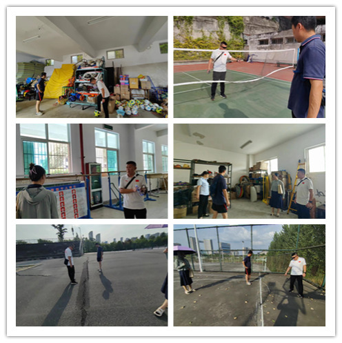 检查人员依次对江南体育器材室、篮球场、英国365集团实验室、乒乓球场、江北器材室、江北田径场、江北篮球场等场地及器械进行了检查,对设施的固定情况,使用年限,安全隐患进行评估,郭经理强调器材如有损坏需及时维修或者更换确保员工使用安全。尤其在江北校区田径场、网球场、篮球场场地有凹陷,护栏底部有破损,指出要及时和相关部门联系,做好维修服务,保证员工在上课期间的安全使用。
