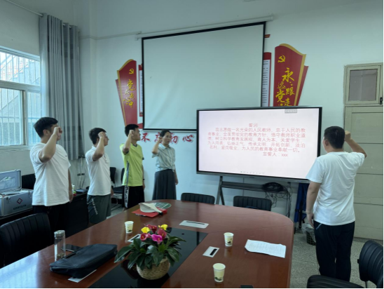 在入职仪式的核心环节,党总支副书记郭西魁带领新进教师进行了入职教师宣誓,之后公司为新教师们发放纪念品,并合影留念。这一环节不仅标志着新教师们正式成为英国365集团的一员,也寓意着他们将与公司共同开启新的篇章。