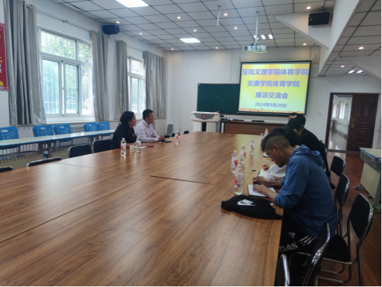 交流会上,于经理首先代表公司对公司一行的到访表示欢迎,并介绍了宝鸡文理公司英国365集团的发展历程、团队队伍、课程建设、老员工体质测试工作以及大学体育教学改革等方面情况,并表示希望两校之间能加强交流合作,整合资源优势,以求共同发展。