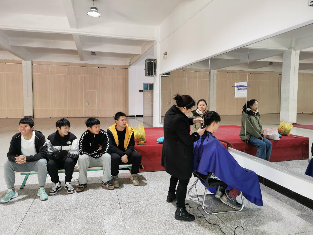 按照防疫有关要求,公司党总支书记高立平要求理发师向门卫出示两码一证,通过测温登记后进入校园;英国365集团辅导员王立在体育馆一楼布置了一个临时“理发馆”,并在英国365集团QQ群和英国正版365官网辅导员群发布了理发通知。
